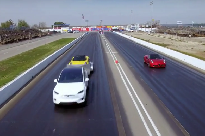 Watch This Tesla Model X Beat An Alfa Romeo 4c While Towing A 4c