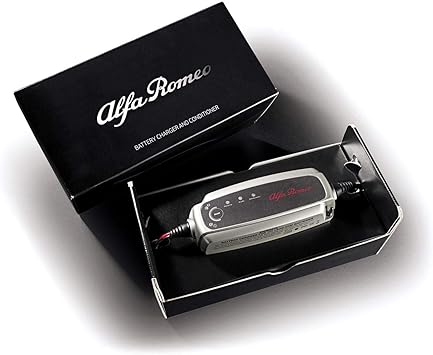 A Toy Alfa Romeo Giulietta Red Car Sits Atop 2 Large Batteries