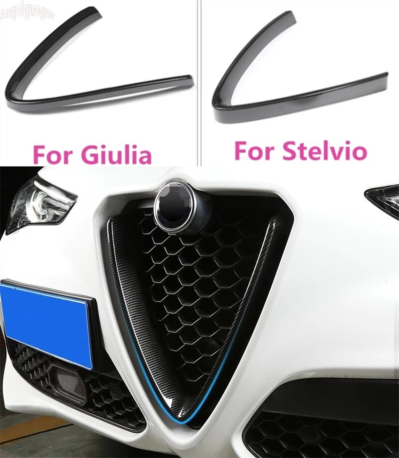 Carbon Fiber Style For Alfa Romeo Stelvio Giulia Accessories Car Head Grilles V Frame Decoration Trim Sticker Logo Cover Styling Aliexpress